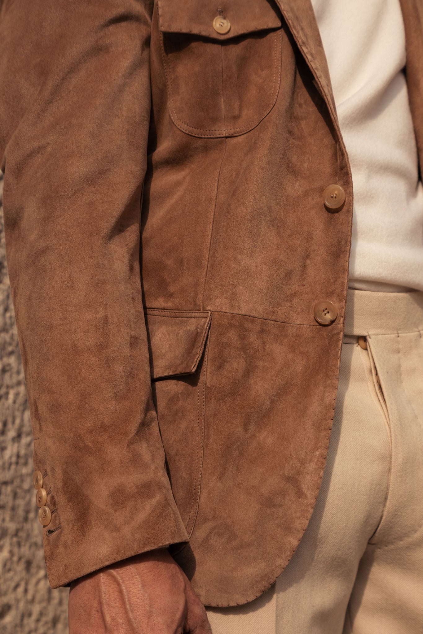 The making of this single jacket took up to ten master craftsmen, and 80 hours of devoted labour. The passion, precision and generational expertise of our craftspeople are ingrained in every stitch.